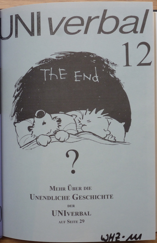 Frage: In den Tiefen analoger Archive gibt es Hinweise dafür, dass ich nicht 1994, sondern 1993 nach Frankreich gegangen bin. Genau wie hier Ursula von der Leyen, scheine auch ich die Jahreszahlen in meinem eigenen Lebenslauf zu verwechseln. Das kann natürlich einen befremdlichen Eindruck machen. Denn eigentlich sollte man doch den eigenen Lebenslauf gut genug kennen, um die Jahreszahlen korrekt anzugeben. Antwort: Schon 1993 wollte ich nach Frankreich gehen. Deshalb habe ich damals meinen Ausstieg aus der Redaktion der Studentenzeitung der TUHH angekündigt, ohne zu ahnen, dass ich das benötigte Erasmus Stipendium 1993 nicht bekommen würde. Darum stand im Sommersemester 1993 auf Seite 29 der UNIverbal Nr. 12: „Jetzt geht Felix für ein Jahr nach Frankreich. Erst schien es das Ende, jetzt wird es für die UNIverbal ein Neuanfang“. Einfache Erklärung für diesen unpräzisen Wortlaut: Wir waren Amateure. Das erklärt auch die urheberrechtlich bedenkliche Gestaltung des Titelblatts, das auf ein mögliches Ende der UNIverbal verwies. (Es war nicht das Ende. Die UNIverbal erschien bis 1999, wie der Katalog der Bibliothek der TU Hamburg-Harburg hier zeigt)